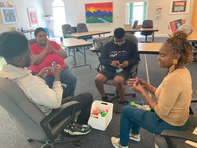 “Building Healthy Connections” - Step into a safe and welcoming space where conversation meets creativity! Together, participants explored the heart of what makes relationships—both with ourselves and with others—healthy and fulfilling. Through engaging group dialogue and interactive activities, participants dove into themes of self-love, kindness, communication, and the patterns that shape how we connect in our communities.